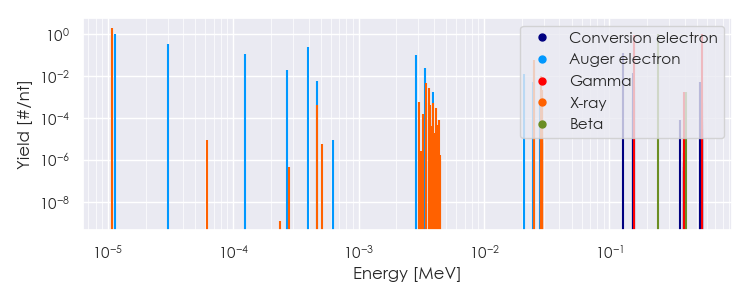 Spectra source: ICRP Publication 107: Nuclear Decay Data for Dosimetric Calculations. Ann. ICRP 2008, 38 (3).
