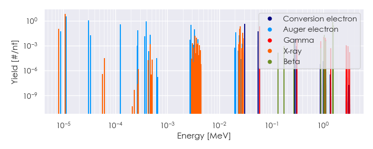 Spectra source: ICRP Publication 107: Nuclear Decay Data for Dosimetric Calculations. Ann. ICRP 2008, 38 (3).