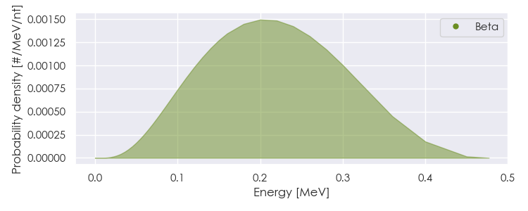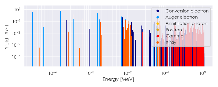 Spectra source: ICRP Publication 107: Nuclear Decay Data for Dosimetric Calculations. Ann. ICRP 2008, 38 (3).