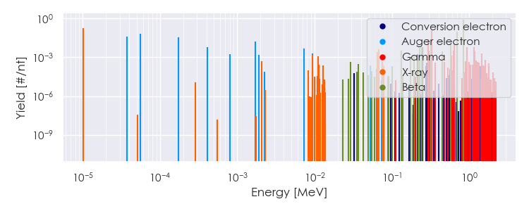Spectra source: ICRP Publication 107: Nuclear Decay Data for Dosimetric Calculations. Ann. ICRP 2008, 38 (3).