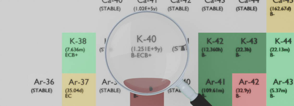 Daughters: Ca-40 (89.1%), Ar-40 (10.9%)