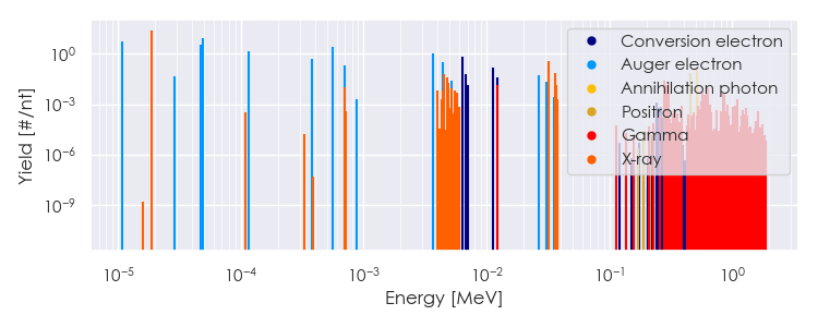 Spectra source: ICRP Publication 107: Nuclear Decay Data for Dosimetric Calculations. Ann. ICRP 2008, 38 (3).
