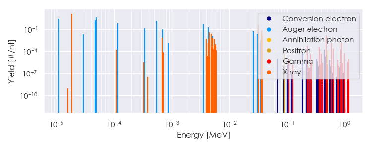 Spectra source: ICRP Publication 107: Nuclear Decay Data for Dosimetric Calculations. Ann. ICRP 2008, 38 (3).