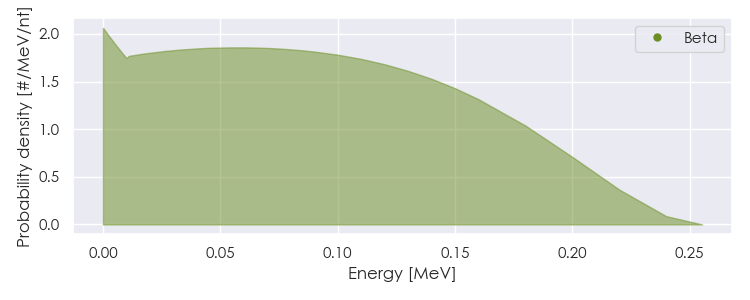 Spectra source: ICRP Publication 107: Nuclear Decay Data for Dosimetric Calculations. Ann. ICRP 2008, 38 (3).