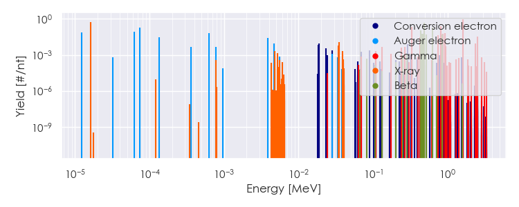 Spectra source: ICRP Publication 107: Nuclear Decay Data for Dosimetric Calculations. Ann. ICRP 2008, 38 (3).