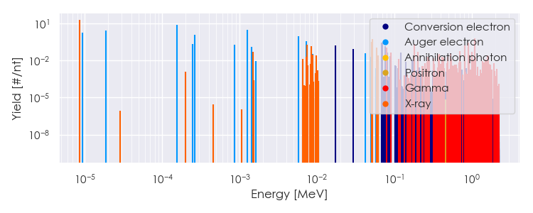 Spectra source: ICRP Publication 107: Nuclear Decay Data for Dosimetric Calculations. Ann. ICRP 2008, 38 (3).