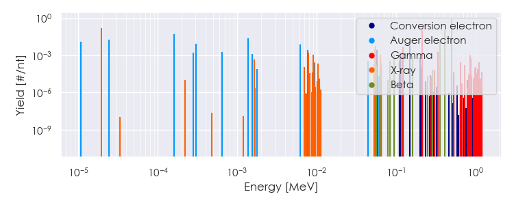 Spectra source: ICRP Publication 107: Nuclear Decay Data for Dosimetric Calculations. Ann. ICRP 2008, 38 (3).