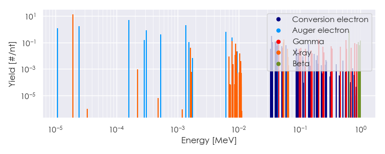 Spectra source: ICRP Publication 107: Nuclear Decay Data for Dosimetric Calculations. Ann. ICRP 2008, 38 (3).