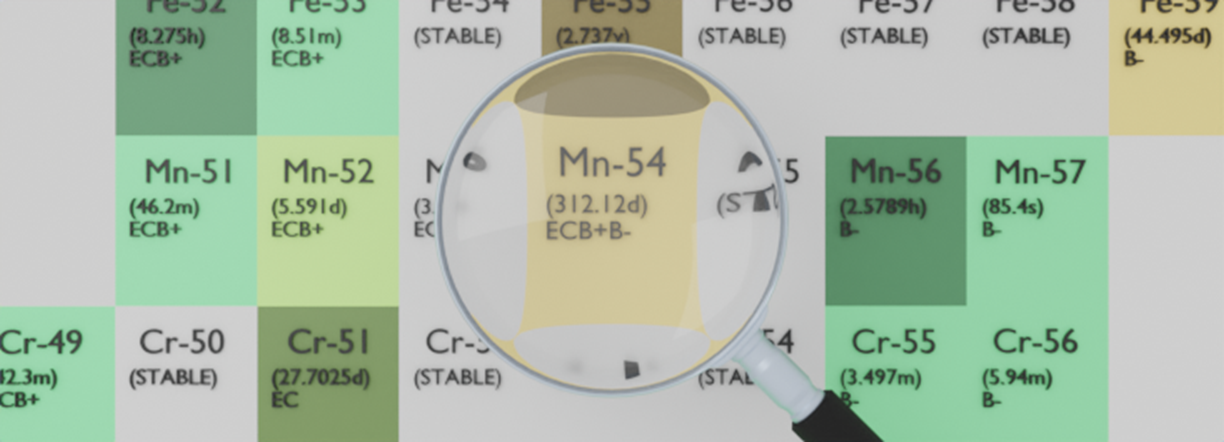 Daughters: Cr-54 (100.0%), Fe-54 (0.00029%)