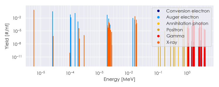 Spectra source: ICRP Publication 107: Nuclear Decay Data for Dosimetric Calculations. Ann. ICRP 2008, 38 (3).