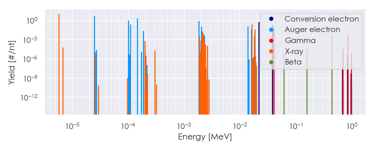 Spectra source: ICRP Publication 107: Nuclear Decay Data for Dosimetric Calculations. Ann. ICRP 2008, 38 (3).