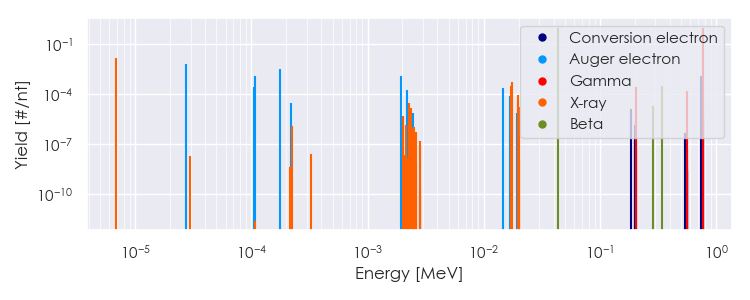 Spectra source: ICRP Publication 107: Nuclear Decay Data for Dosimetric Calculations. Ann. ICRP 2008, 38 (3).