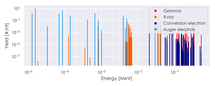 Spectra source: ICRP Publication 107: Nuclear Decay Data for Dosimetric Calculations. Ann. ICRP 2008, 38 (3).