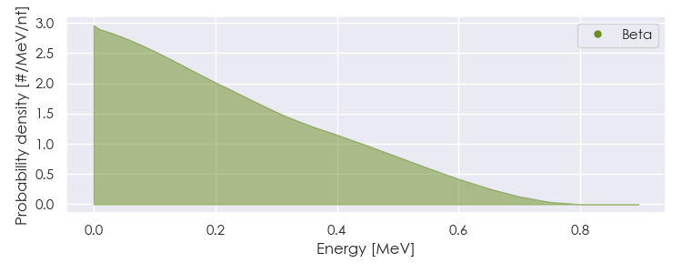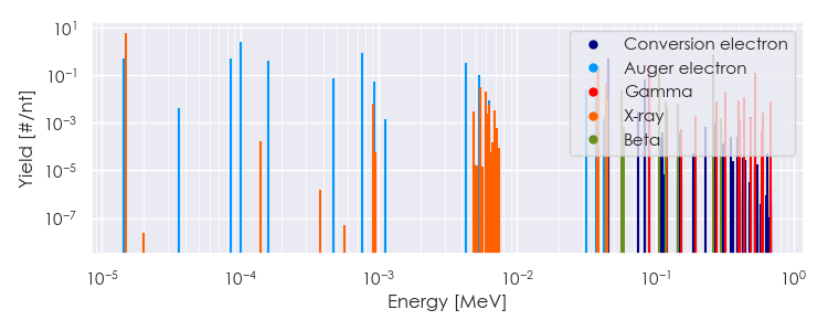 Spectra source: ICRP Publication 107: Nuclear Decay Data for Dosimetric Calculations. Ann. ICRP 2008, 38 (3).