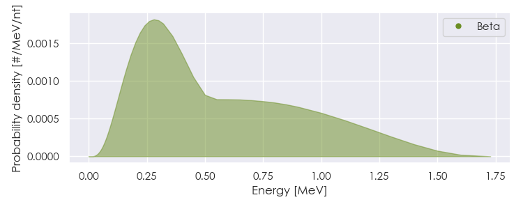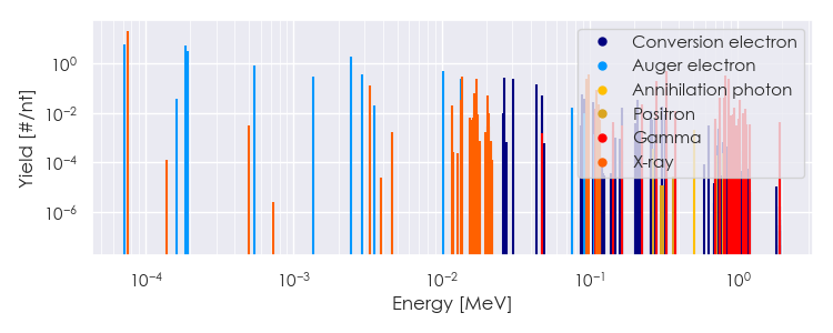 Spectra source: ICRP Publication 107: Nuclear Decay Data for Dosimetric Calculations. Ann. ICRP 2008, 38 (3).
