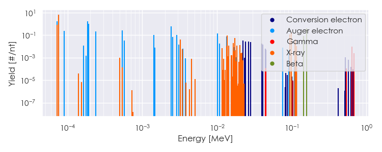 Spectra source: ICRP Publication 107: Nuclear Decay Data for Dosimetric Calculations. Ann. ICRP 2008, 38 (3).