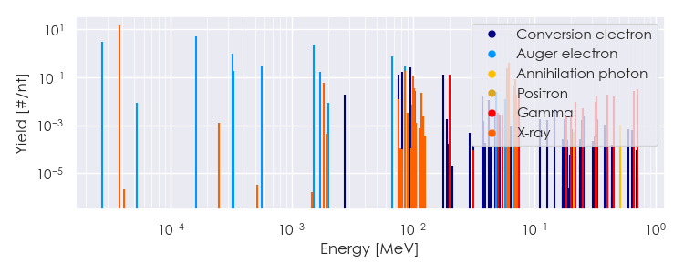 Spectra source: ICRP Publication 107: Nuclear Decay Data for Dosimetric Calculations. Ann. ICRP 2008, 38 (3).