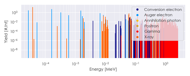 Spectra source: ICRP Publication 107: Nuclear Decay Data for Dosimetric Calculations. Ann. ICRP 2008, 38 (3).