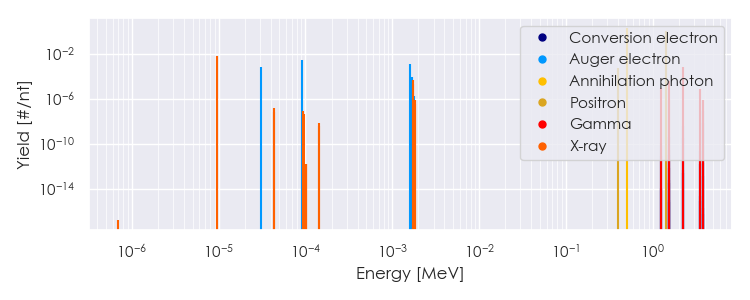 Spectra source: ICRP Publication 107: Nuclear Decay Data for Dosimetric Calculations. Ann. ICRP 2008, 38 (3).