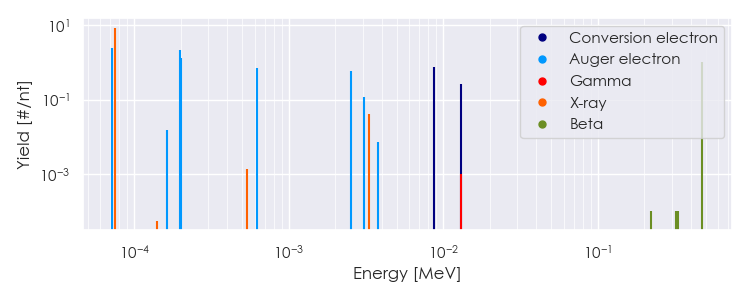 Spectra source: ICRP Publication 107: Nuclear Decay Data for Dosimetric Calculations. Ann. ICRP 2008, 38 (3).