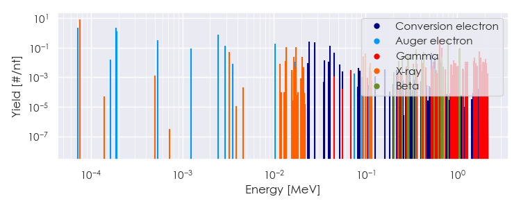 Spectra source: ICRP Publication 107: Nuclear Decay Data for Dosimetric Calculations. Ann. ICRP 2008, 38 (3).