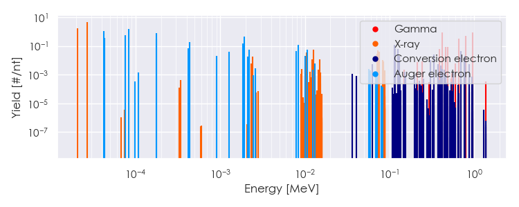 Spectra source: ICRP Publication 107: Nuclear Decay Data for Dosimetric Calculations. Ann. ICRP 2008, 38 (3).