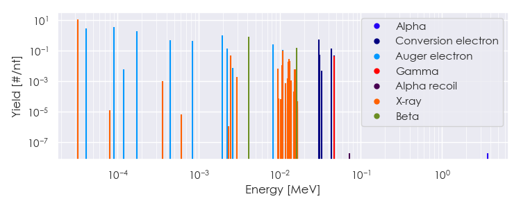 Spectra source: ICRP Publication 107: Nuclear Decay Data for Dosimetric Calculations. Ann. ICRP 2008, 38 (3).