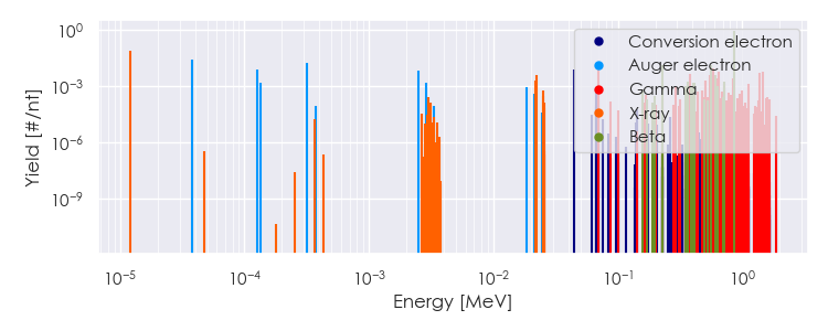 Spectra source: ICRP Publication 107: Nuclear Decay Data for Dosimetric Calculations. Ann. ICRP 2008, 38 (3).