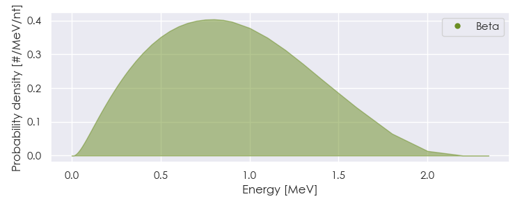 Spectra source: ICRP Publication 107: Nuclear Decay Data for Dosimetric Calculations. Ann. ICRP 2008, 38 (3).