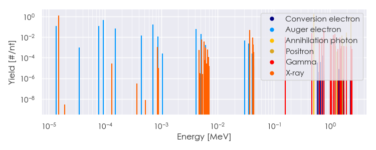 Spectra source: ICRP Publication 107: Nuclear Decay Data for Dosimetric Calculations. Ann. ICRP 2008, 38 (3).