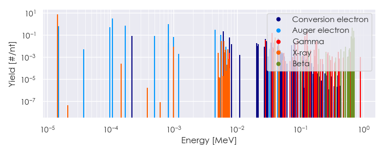Spectra source: ICRP Publication 107: Nuclear Decay Data for Dosimetric Calculations. Ann. ICRP 2008, 38 (3).