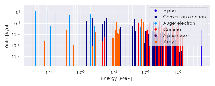 Spectra source: ICRP Publication 107: Nuclear Decay Data for Dosimetric Calculations. Ann. ICRP 2008, 38 (3).