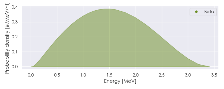 Spectra source: ICRP Publication 107: Nuclear Decay Data for Dosimetric Calculations. Ann. ICRP 2008, 38 (3).