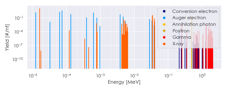Spectra source: ICRP Publication 107: Nuclear Decay Data for Dosimetric Calculations. Ann. ICRP 2008, 38 (3).