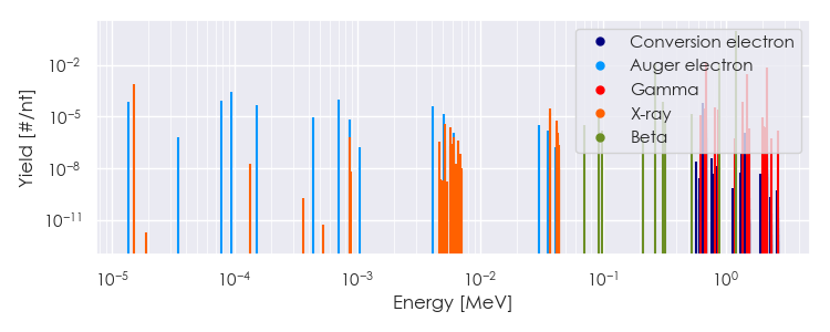 Spectra source: ICRP Publication 107: Nuclear Decay Data for Dosimetric Calculations. Ann. ICRP 2008, 38 (3).