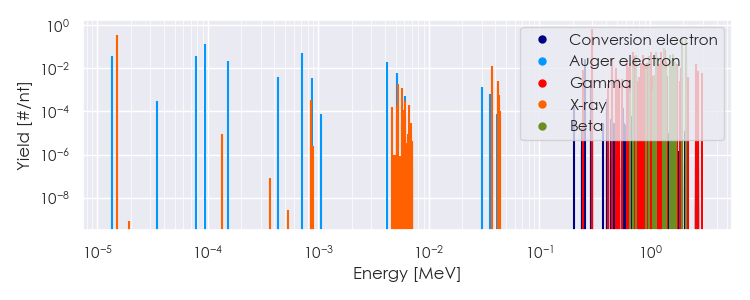 Spectra source: ICRP Publication 107: Nuclear Decay Data for Dosimetric Calculations. Ann. ICRP 2008, 38 (3).