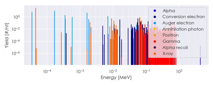 Spectra source: ICRP Publication 107: Nuclear Decay Data for Dosimetric Calculations. Ann. ICRP 2008, 38 (3).