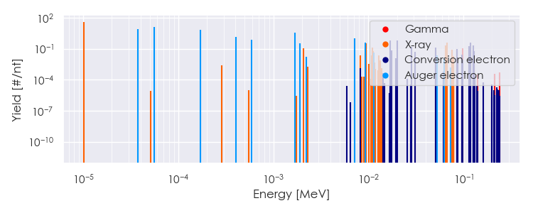 Spectra source: ICRP Publication 107: Nuclear Decay Data for Dosimetric Calculations. Ann. ICRP 2008, 38 (3).