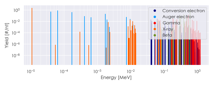 Spectra source: ICRP Publication 107: Nuclear Decay Data for Dosimetric Calculations. Ann. ICRP 2008, 38 (3).
