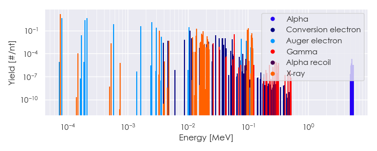 Spectra source: ICRP Publication 107: Nuclear Decay Data for Dosimetric Calculations. Ann. ICRP 2008, 38 (3).