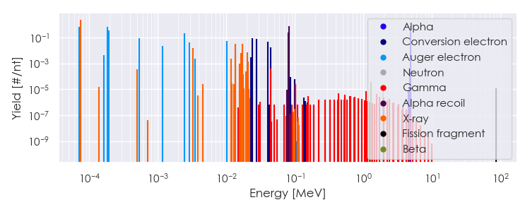 Note: Radiations with yield < 0.01 are excluded from the table, but are available in the linked *.csv data.