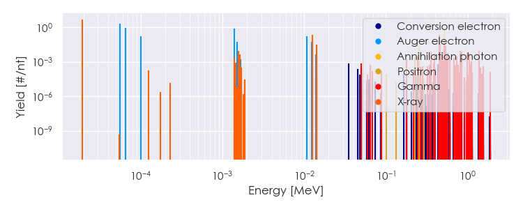 Spectra source: ICRP Publication 107: Nuclear Decay Data for Dosimetric Calculations. Ann. ICRP 2008, 38 (3).