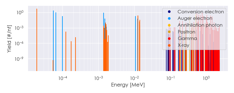 Spectra source: ICRP Publication 107: Nuclear Decay Data for Dosimetric Calculations. Ann. ICRP 2008, 38 (3).