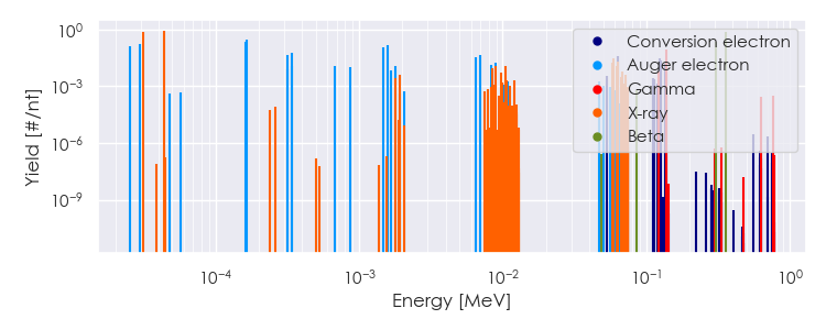 Spectra source: ICRP Publication 107: Nuclear Decay Data for Dosimetric Calculations. Ann. ICRP 2008, 38 (3).
