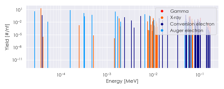 Spectra source: ICRP Publication 107: Nuclear Decay Data for Dosimetric Calculations. Ann. ICRP 2008, 38 (3).
