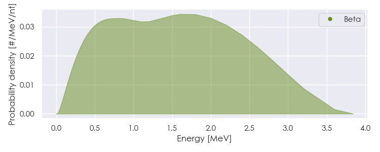Spectra source: ICRP Publication 107: Nuclear Decay Data for Dosimetric Calculations. Ann. ICRP 2008, 38 (3).