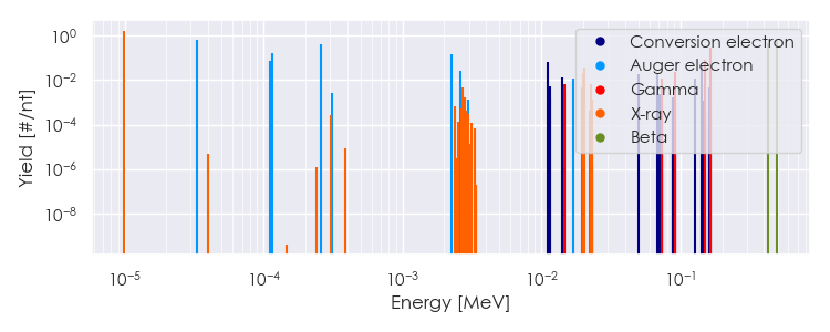 Spectra source: ICRP Publication 107: Nuclear Decay Data for Dosimetric Calculations. Ann. ICRP 2008, 38 (3).