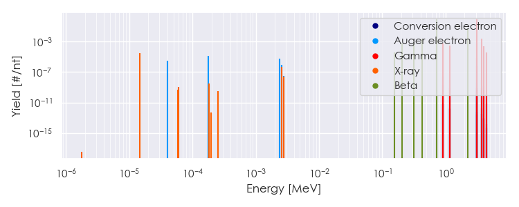Spectra source: ICRP Publication 107: Nuclear Decay Data for Dosimetric Calculations. Ann. ICRP 2008, 38 (3).