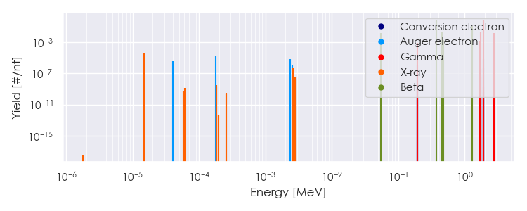 Spectra source: ICRP Publication 107: Nuclear Decay Data for Dosimetric Calculations. Ann. ICRP 2008, 38 (3).