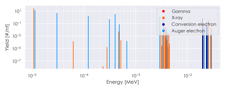 Spectra source: ICRP Publication 107: Nuclear Decay Data for Dosimetric Calculations. Ann. ICRP 2008, 38 (3).